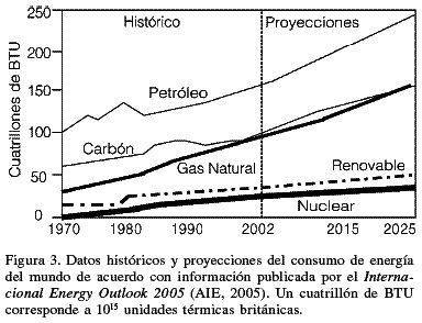 En concordancia con lo señalado, la Internacional Energy Outlook 2005 predice para el periodo 2002-2025 un fuerte crecimiento de la demanda energética en el mundo (AIE, 2005). Se estima un 57% de aumento en los requerimientos de energía para el período, con el petróleo como fuente dominante (Figura 3).